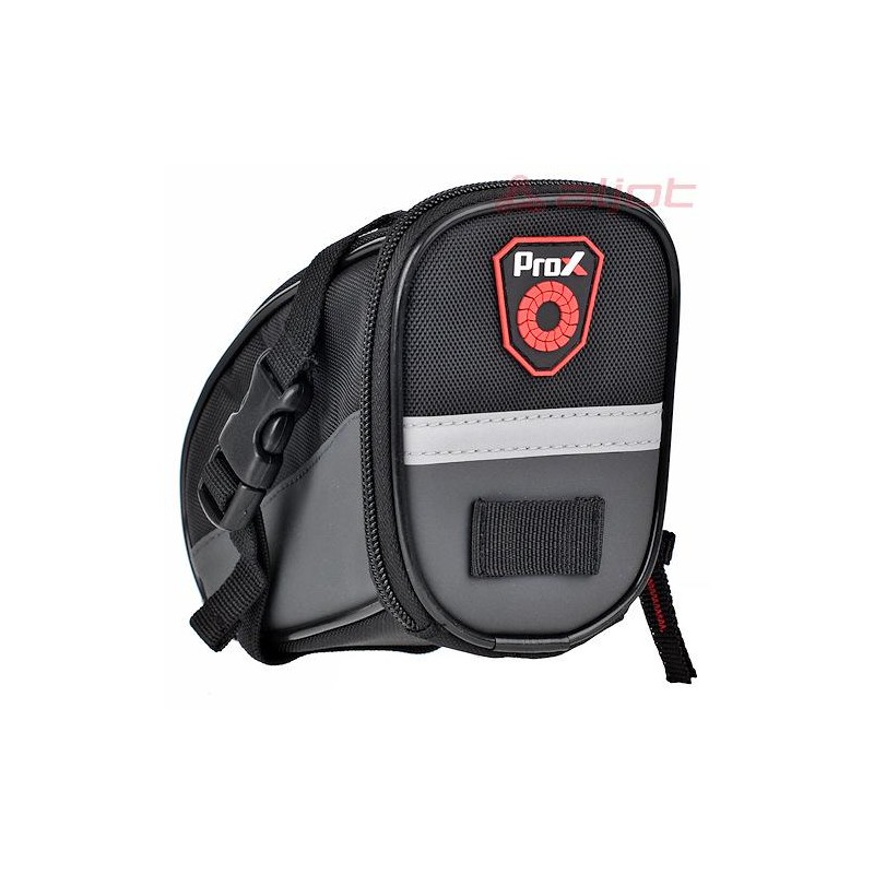 • sakwa podsiodłowa • montowana na dwa paski z klamrą i pasek z rzepem • ergonomiczny kształt z jedną dużą komorą • wewnętrzna kieszeń z siatki, usztywnione dno • posiada szlufkę na tylna lampę • wykończenie paskiem odblaskowym • materiał: poliester • wymiary: 17,5 x 8,5 x 8,5cm • waga: 115g, pojemność: 1,2l • pakowanie: woreczek strunowy, etykieta ProX